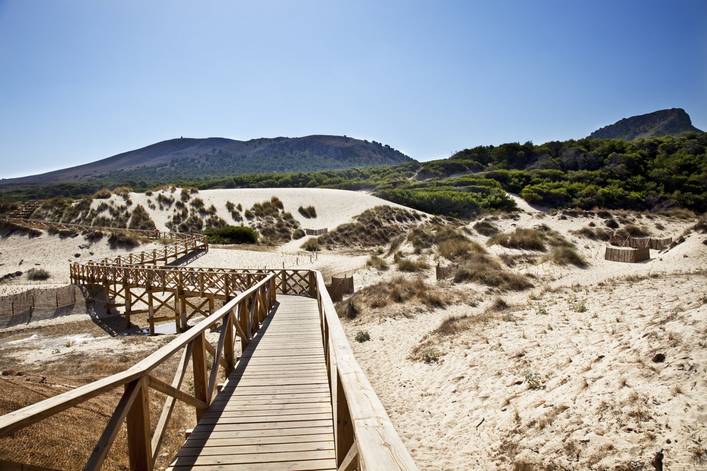This extensive fine-grained sandy area located between low rocky areas finishes in a system of dunes with the dune of es Munt Gros-, populated by lentisc and pine trees. The right part reaches Cala Agulla, passing Cap des Freu and it has one of the biggest cormorant and seagull colonies of the Balearic archipelago, unspoilt, whereas on the left side there is a residential and touristic village since the decade of the seventies of the 20th century.